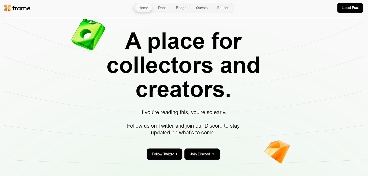 Since Frame is still in the preliminary stages of development, and there are no public testnets to try yet, the only thing for us NFT adventurers to do for now is keep track of the project as it evolves from here.