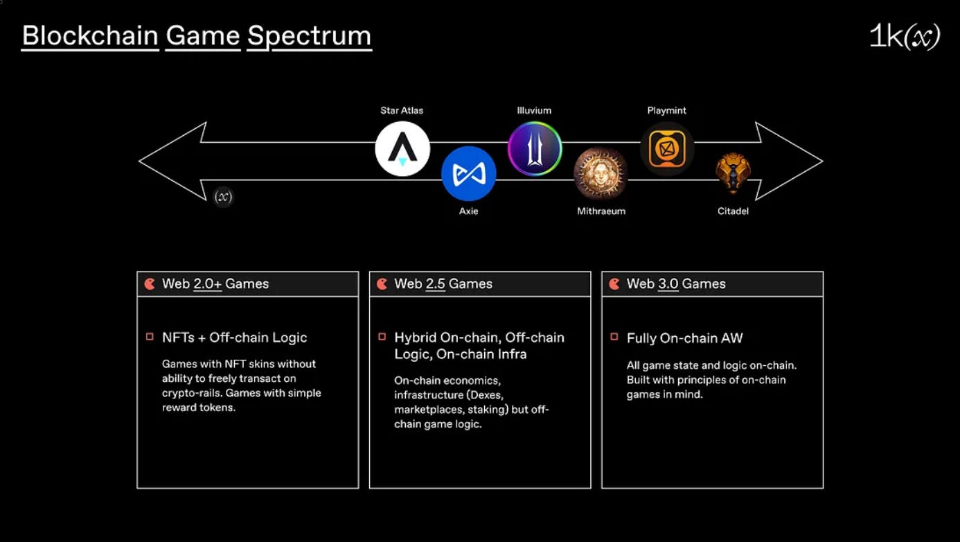 There’s a spectrum here too, right. Some projects depend on the blockchain minimally, some use a combo of offchain + onchain storage, and some are fully onchain. This spectrum applies to the blockchain gaming scene as well.