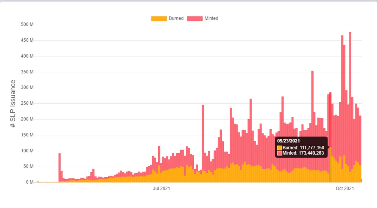 This SLP change was a temporary fix, and it shows the power the builders have over the economy — to the point that, if they so wished, they could skyrocket the price of SLP merely by adjusting the burn rate.