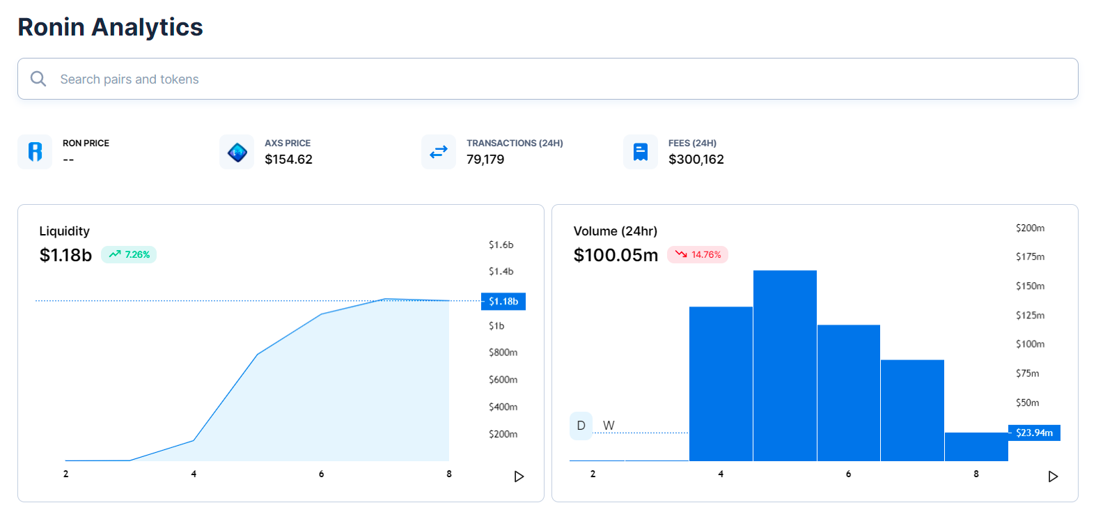 Accordingly, players can now easily provide liquidity for, or trade through, Axie Infinity’s AXS and SLP tokens on the game’s bespoke sidechain, Ronin. This is a UX gamechanger for the Axie economy!