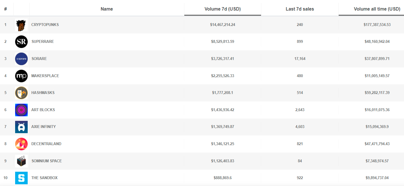 CryptoPunks just facilitated +$14.5M in 7-day volume, putting the OG NFT project at nearly $180M in all-time volume according to NonFungible.