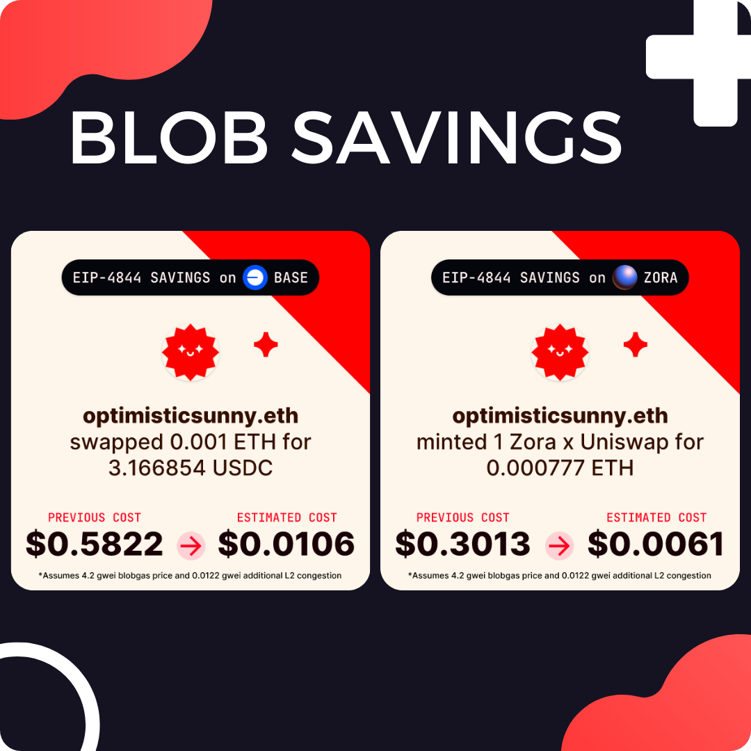 Estimating the savings: The Optimism community has developed the Superchain Savings Estimator, a tool designed to preview the potential reductions in gas costs on Optimism's Superchain L2s following the adoption of blobspace.