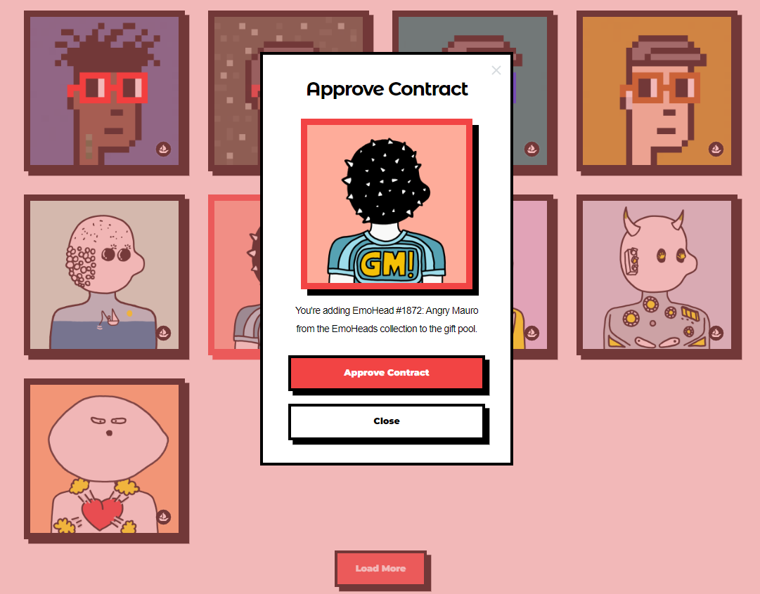Select the NFT you want to gift and then press Approve Contract and complete the approval transaction with your wallet
