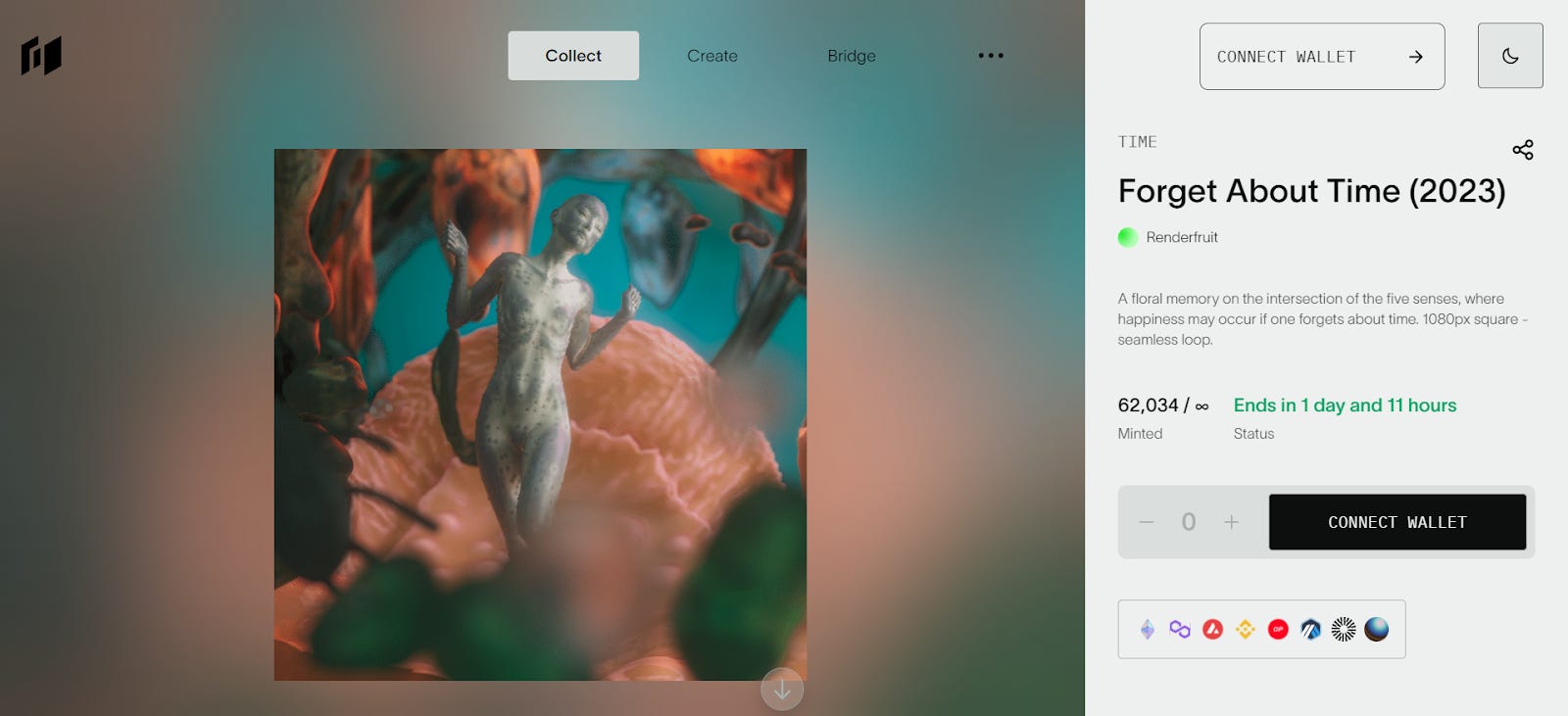 Did you catch my write-up on cross-chain NFTs earlier this week? Then you remember Holograph, which is known for its “holographic asset” hNFTs. If you’re interested in cross-chain NFTs but have never minted one before, you might consider the current free drop on Holograph, Forget About Time by Clara Luzian a.k.a. Renderfruit.
