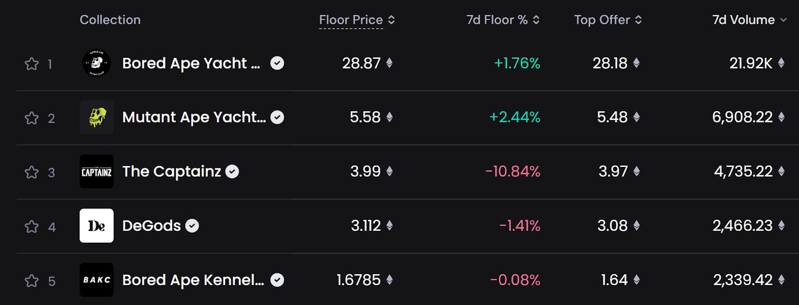 🔝 7D top collections by volume