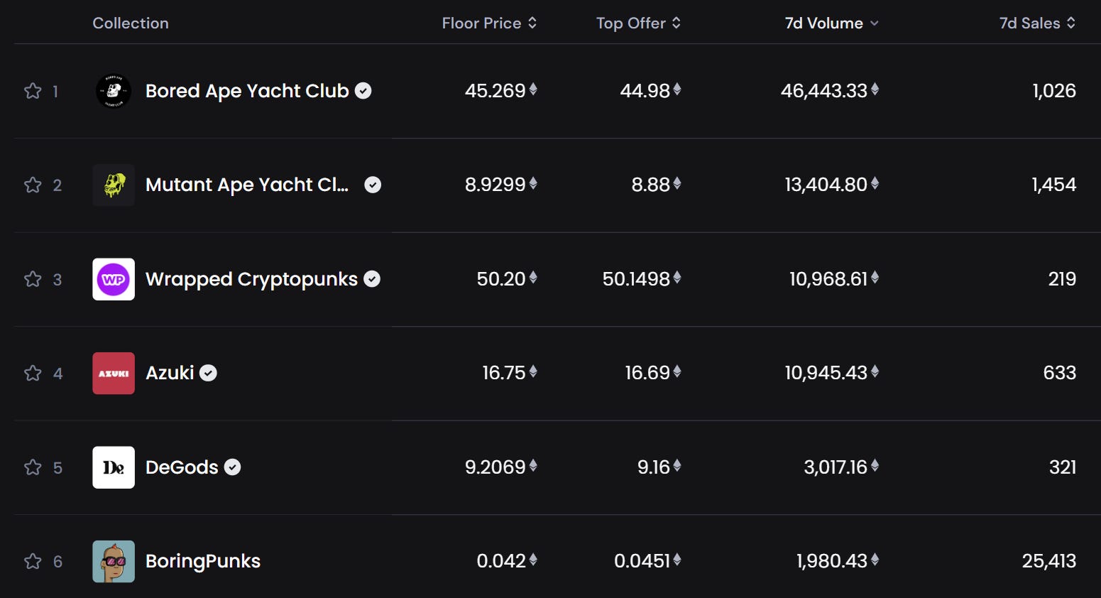 🔝 7D top collections by volume