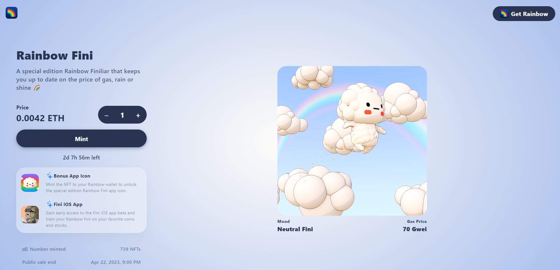 📝 Overview: The Rainbow wallet team, in partnership with the Finiliar collection, has introduced Bow, a special-edition “Rainbow Finiliar” dynamic NFT that gets happy when Ethereum gas price are low and upset when they’re high. Available through April 22nd, Bow also offers TestFlight access to the Finiliar iOS and Apple Watch apps.