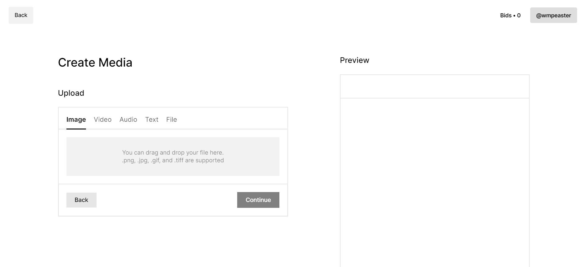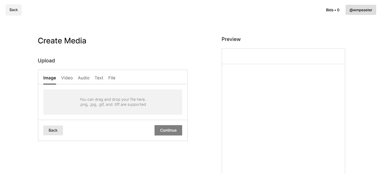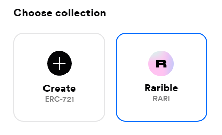 Once you’re signed in, you should see a “Create” button in the page’s upper-right corner. Click on that. You’ll arrive at this minting interface: