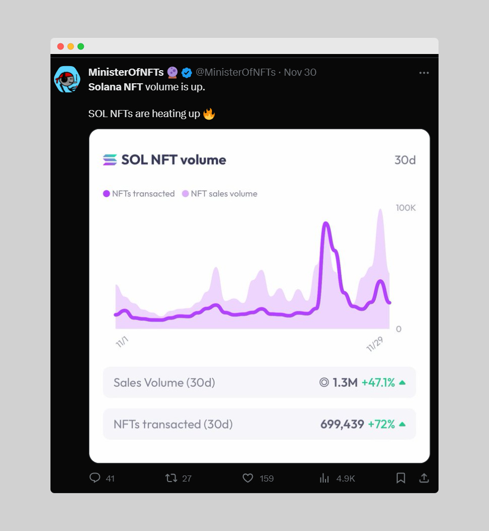 Of course, over the next couple of years and among other metrics we may see BTC, ETH, and SOL all reach new all-time price highs, and you can imagine how the associated excitement around those milestones would feed back into NFTs across these chains.Ā