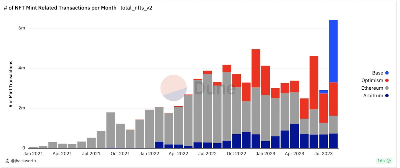 Last month, nearly 100 million NFTs were minted via +6 million transactions across Ethereum, Arbitrum, Optimism, and Base.