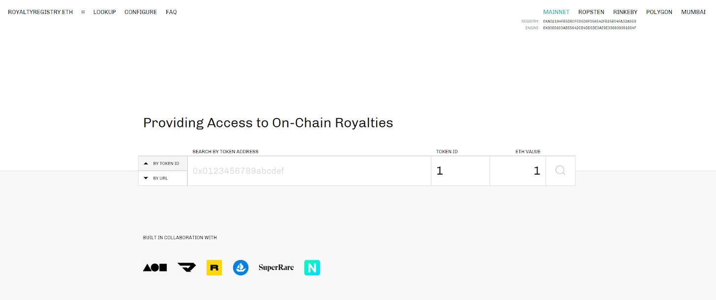 📑 Check out royaltyregistry.xyz/lookup