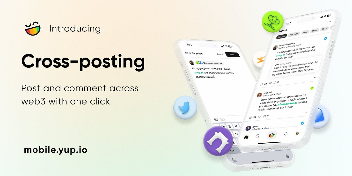 Yup, a platform that aggregates web3 content, just introduced cross-posting, which lets users simultaneously post on Farcaster, Lens, and Twitter with a single click via the Yup Mobile app. Wanting to dive deeper into web3 social but find it hard to spread out content on multiple different platforms? This new resource might be just what you need to make that leap in easier. If you’re not already a Yup Mobile user, you can sign up for the beta’s waitlist here.
