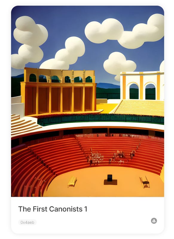 Alternatively if you prefer a more DIY approach, you can always use projects like Manifold and Zora to mint your own community open editions, free mints, etc. For example, I contribute to NFT curation protocol JPG and earlier this year I created a free mint via Stable Diffusion called the âFirst Canonistsâ to commemorate the first month of our community collaborating on NFT token-curated registries together. These mints can be fun, easy, and help build bonds on- and off-chain.