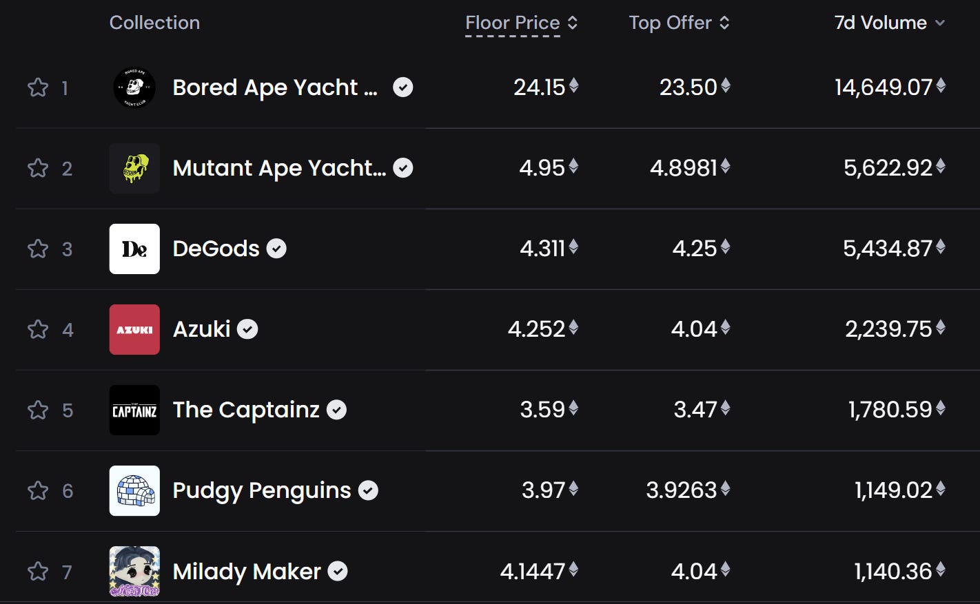 Over the past week, the floor-based market cap of the NFT space rose from 7.54 million ETH to 8.55 million ETH for a 13.4% increase ⤴️