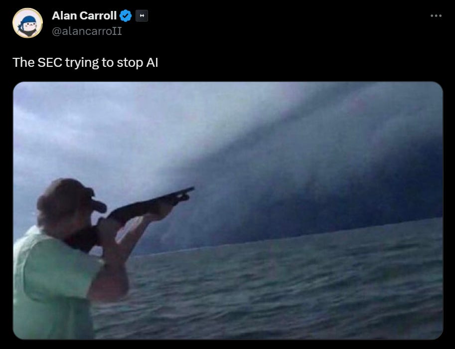 😜 Gary Gensler’s pivoting from crypto to AI? Wow! I’m guessing his performance in crypto is an indication of what’s to come…