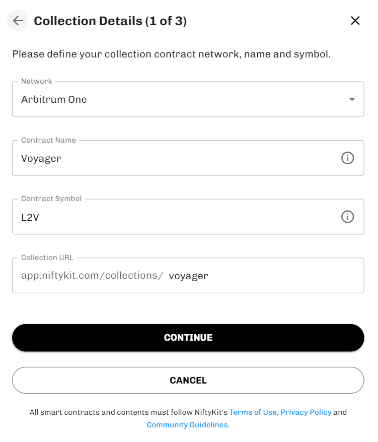 Press âCreate Nowâ and when prompted by NiftyKit switch to the L2 network that youâre launching your smart contract on, then press âCreate Nowâ again and confirm the transaction with your wallet