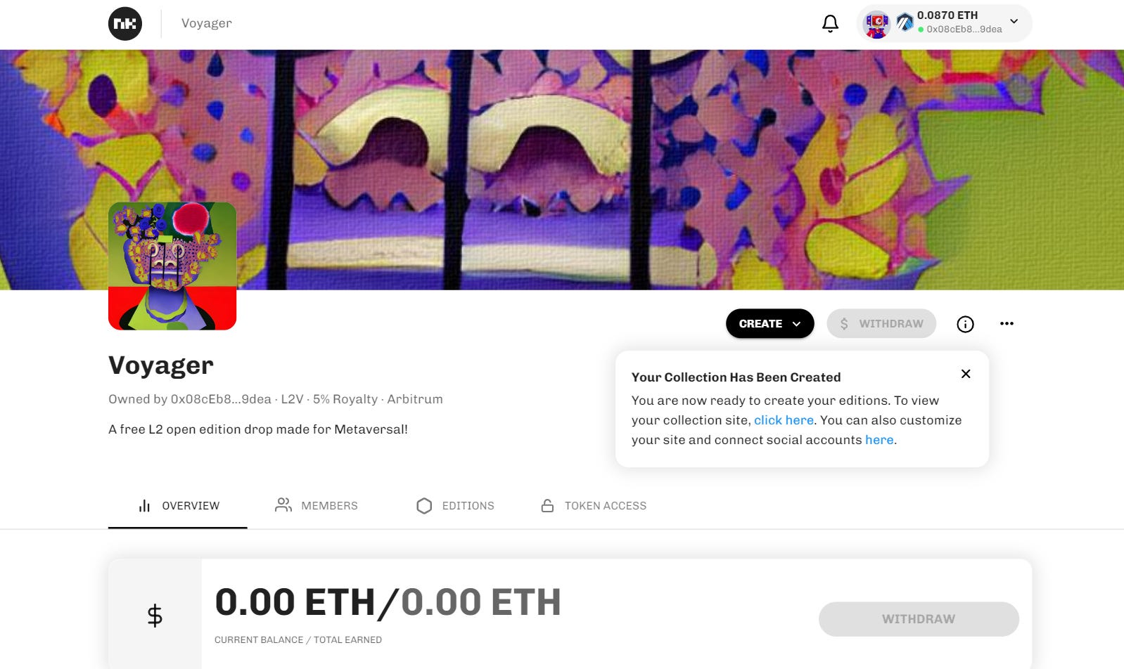 After your OE drop is live, you can go back to your NiftyKit dashboard to monitor and manage your collection post-drop. Here youâll be able to withdraw any accrued funds, add team member addresses to your project, build an access list, renounce the ownership of your underlying smart contract, create new OEs, and more.Â