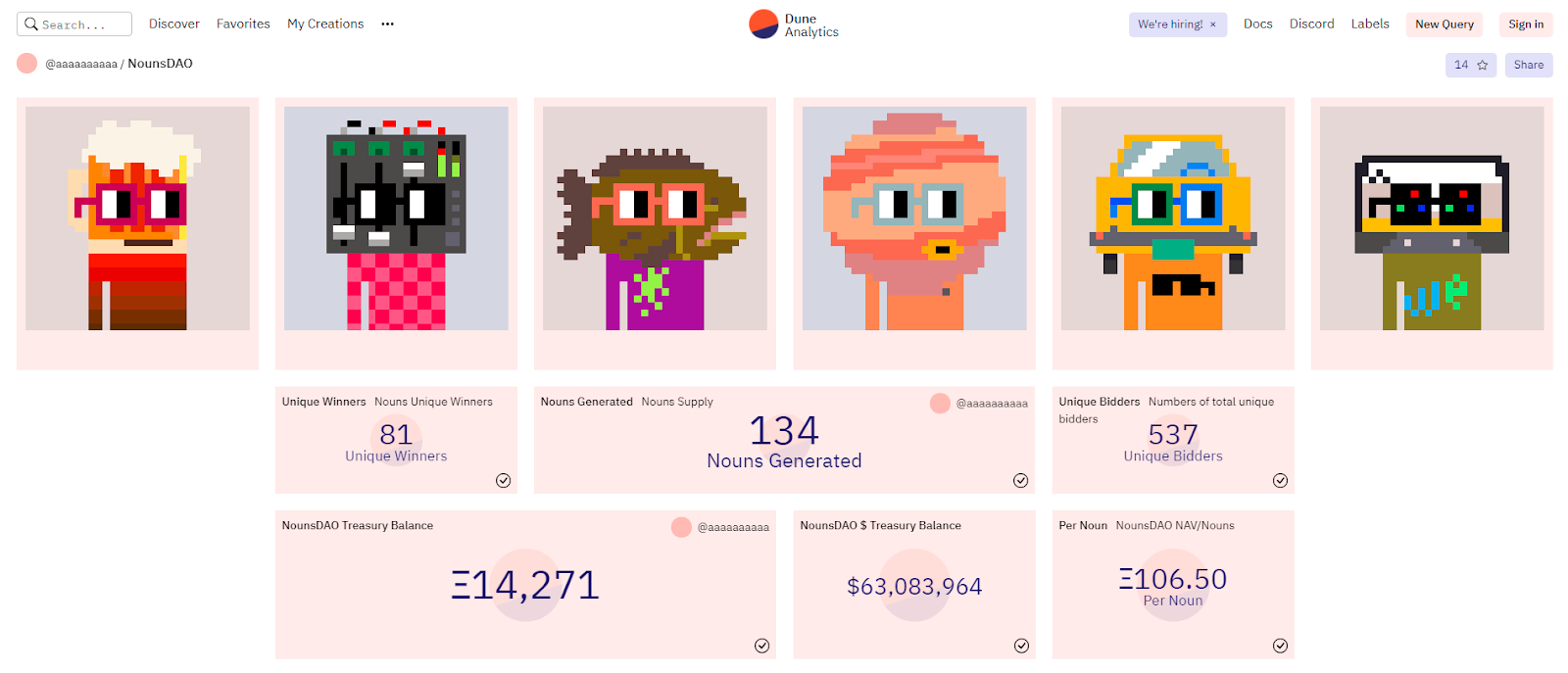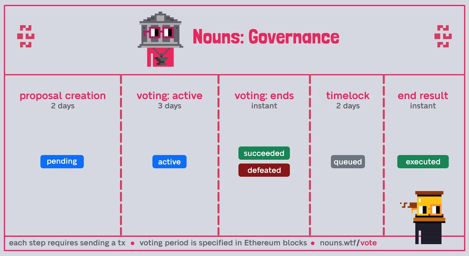Check out the Nouns DAO Governance dashboard to see the project’s current and historical proposals