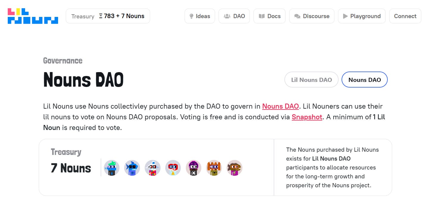 So far, the Lil Nouns community has used its ETH funds to buy 7 Noun NFTs, meaning the group can collectively vote on how these NFTs are used to vote in Nouns DAO proper.