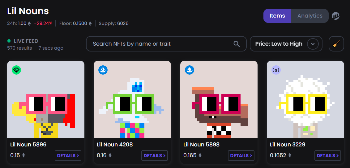 In other words, if you hold at least 1 Lil Noun NFT, then you can directly participate in Nouns DAO votes via the Lil Nouns governance dashboard. At the time of this post’s writing, the floor price for the collection was ~0.15 ETH.