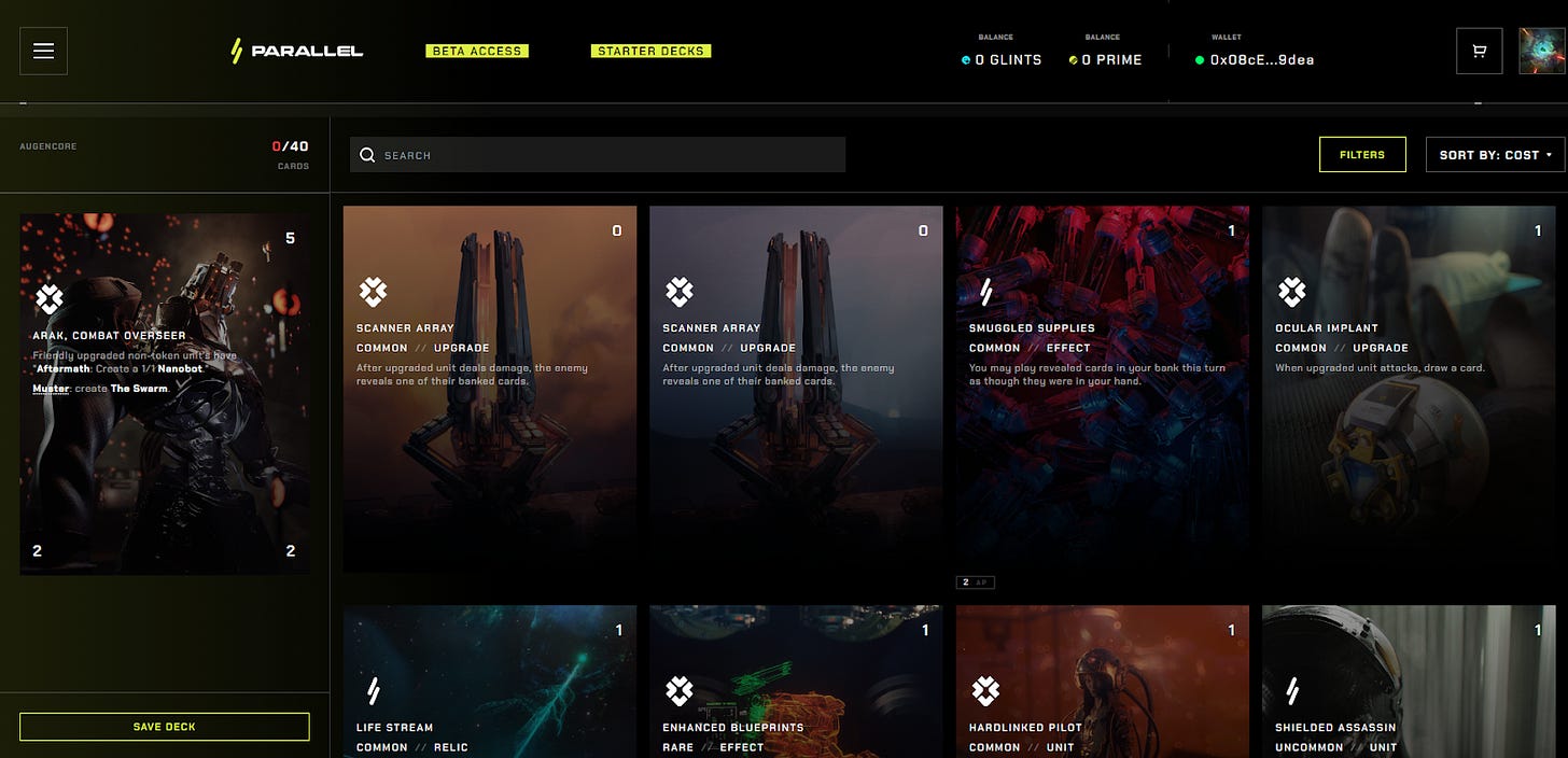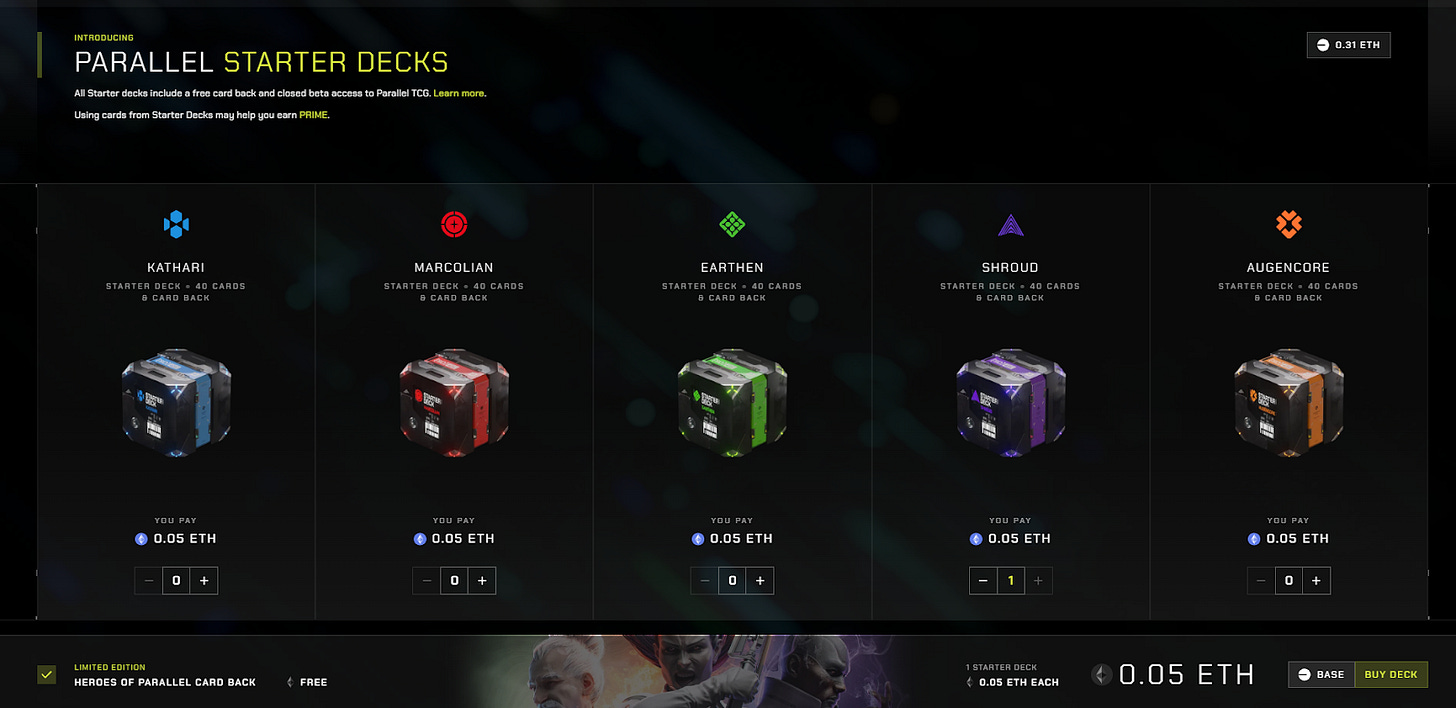 Notably, these decks will provide you with 40 cards to begin playing, plus 10 apparition (non-NFT) packs to help you additionally build out your card options. Buying one of these decks will also grant you access to the Parallel TCG beta, so the steps to begin are like so: