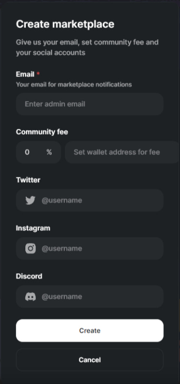 Finish up by pressing the âCreateâ button, then complete the creation transaction with your wallet and once thatâs done your marketplace will be launched!