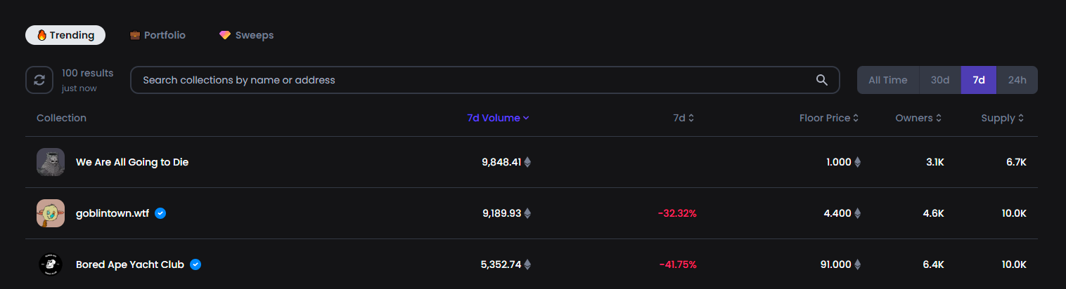 We Are All Going to Die (WAGDIE), a new free-to-mint collection, topped the ecosystem’s volume charts on the week.