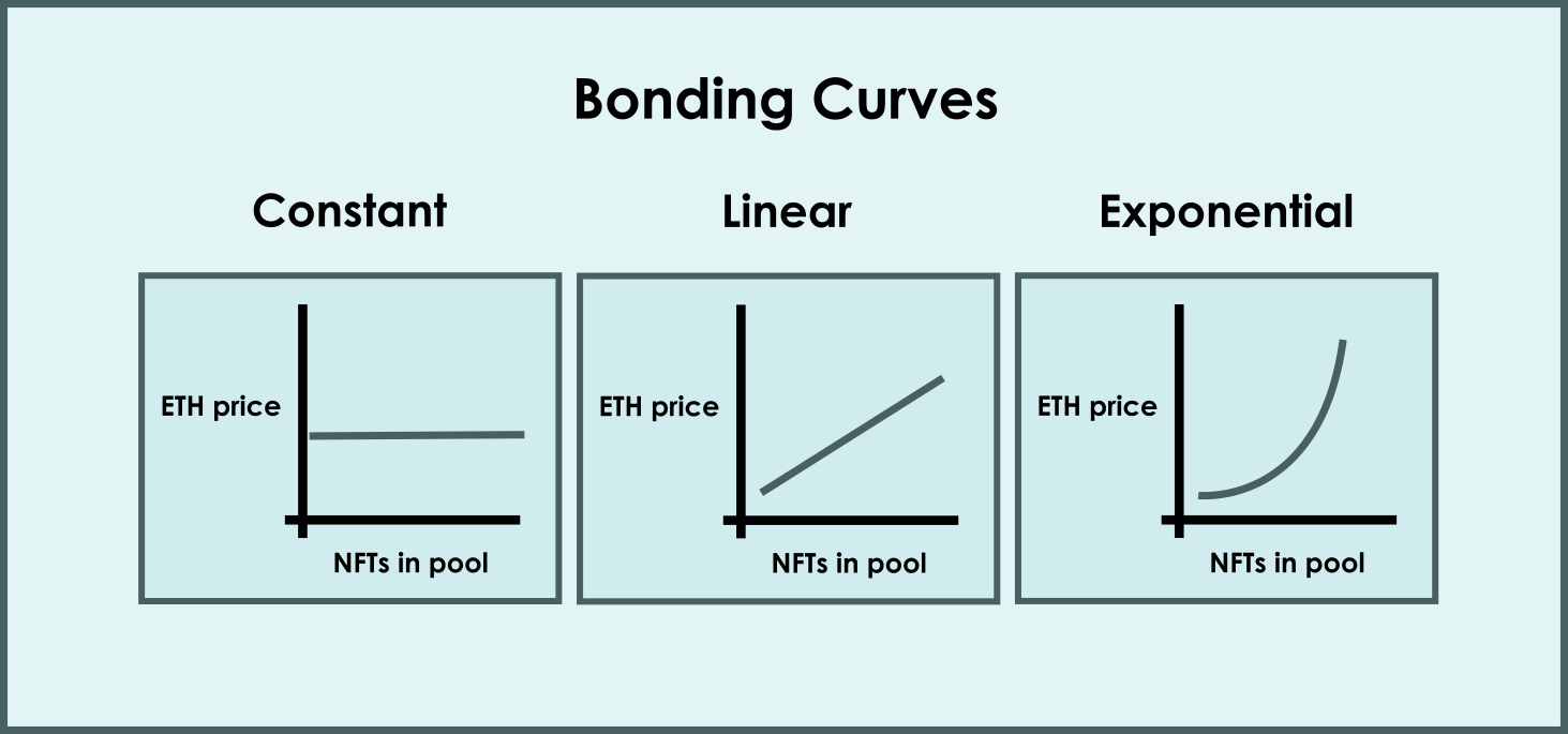 Instead of fractionalizing NFTs into divisible ERC20 tokens like NFTX does, sudoAMM will instead use bonding curves to facilitate the trading of whole NFTs. Accordingly, a given pool’s price quotes will be determined by which bonding curve style the pool creator chose. We’ve never seen this sort of marketplace approach in the NFT ecosystem before!