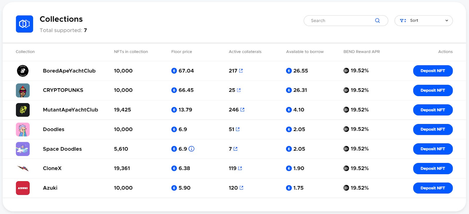 Borrowers can use the dapp to borrow ETH against NFTs from seven top PFP NFT collections, namely Azuki, BAYC, CloneX, CryptoPunks, Doodles, MAYC, and Space Doodles.Â