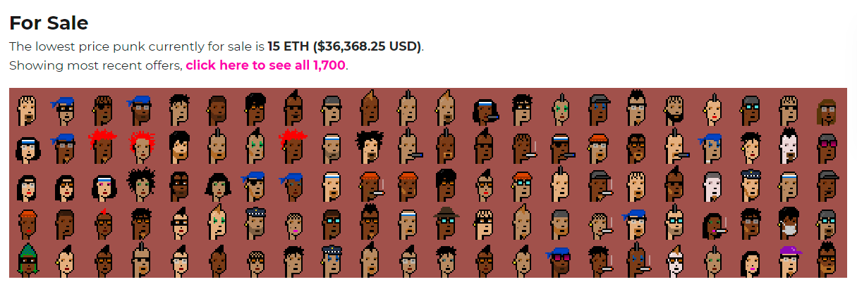 The CryptoPunk floor price is 15 ETH, or ~$36,400, right now 🏷️