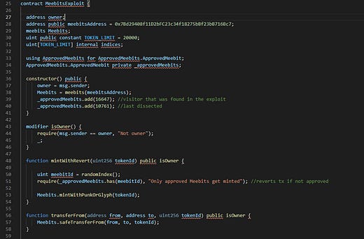 Speaking of rare Meebits, someone created a custom contract to exploit the randomness of Meebits generations and thereby claimed one of the projectās most prized avatars šµĀ