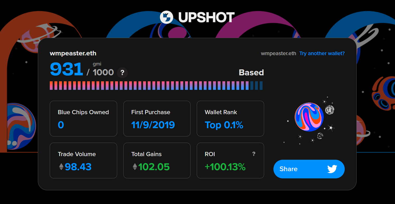 The Upshot gmi (grading market index) is a resource scored 1 through 1,000 thatâs designed to assess the performance and potential of NFT wallets.Â