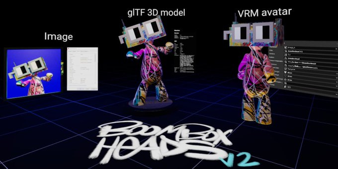 For example, Boomboxheads has helped pioneer “multi-format tokens,” i.e. NFTs who have associated VRM files directly infused in their metadata. This approach allows a game or virtual world to simply parse for the existence of an NFT to support its VRM avatar.